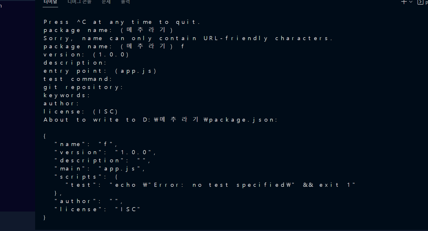 그러면 폴더에 package.json 이 생성된 것을 보실 수 있습니다.