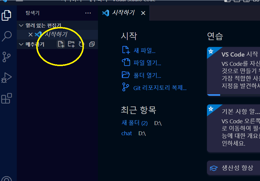 저는 D 드라이브에 Chat이라는 폴더를 만들었습니다 ( 사진의 폴더는 메추라기로 예시용 폴더입니다. )