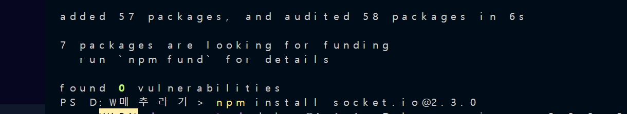 node js 에서도 socket io 모듈이라는 걸 다운로드할 겁니다.