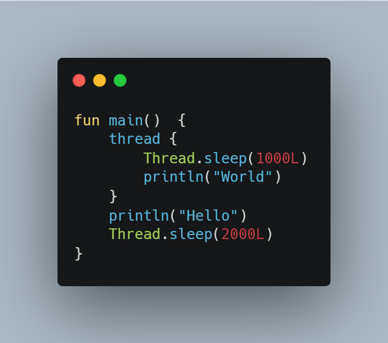 위의 코드와의 차이점을 생각해 볼 수 있다. Thread를 통해 sleep 하면 출력은 Hello 가 찍히고 World가 찍힌다.