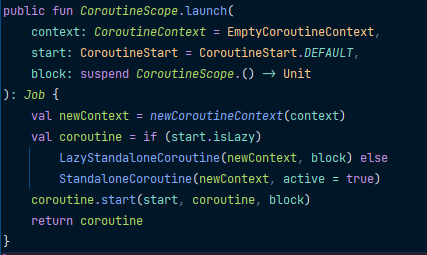 글에서 말하길 runBlocking은 Builder, launch는 Scope이몀서 job, delay는 suspend fun이다.
