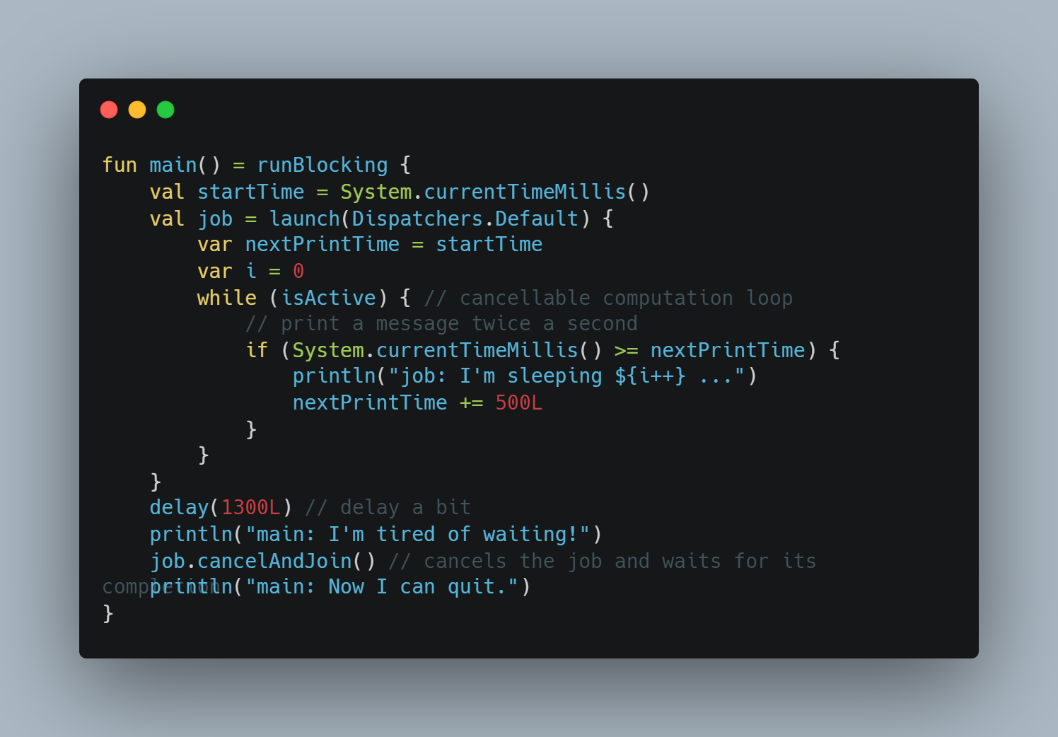 https://kotlinlang.org/docs/coroutines-basics.html#your-first-coroutine