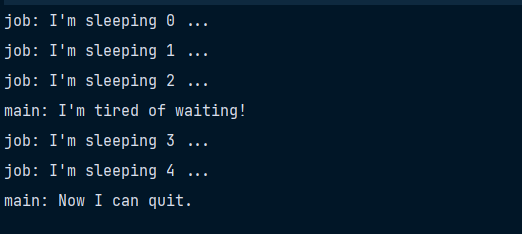 7. println("main: Now I can quit")이 마지막으로 출력되고 main함수를 끝낸다.