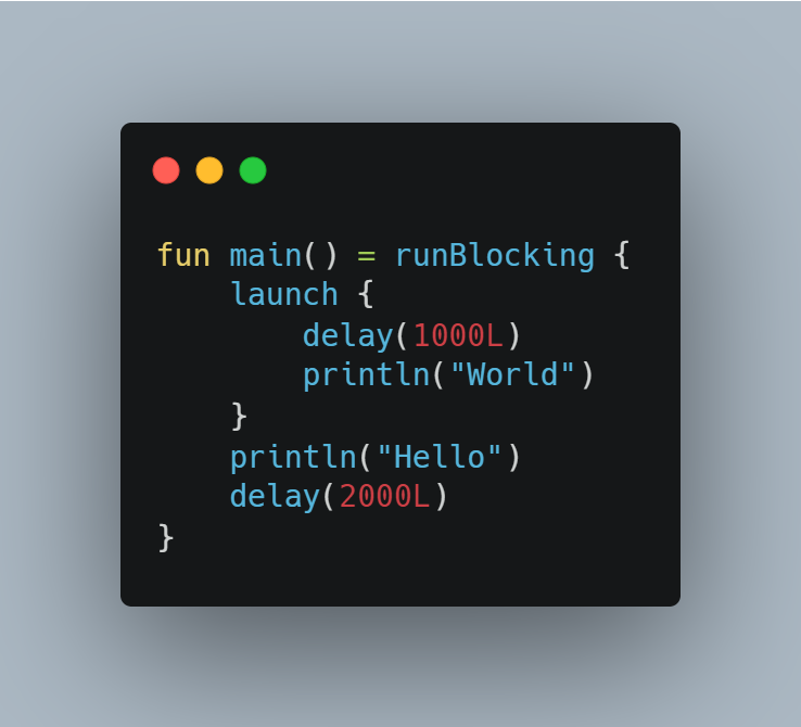 2. 1초 뒤에 launch 안 delay가 끝나고 World를 출력한다.
