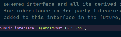Deferred는 Job inferface를 상속받는 interface이다. 그래서 job의 메서드와 4개의 새로운 함수가 있다. 그중에 하나가 await이다.