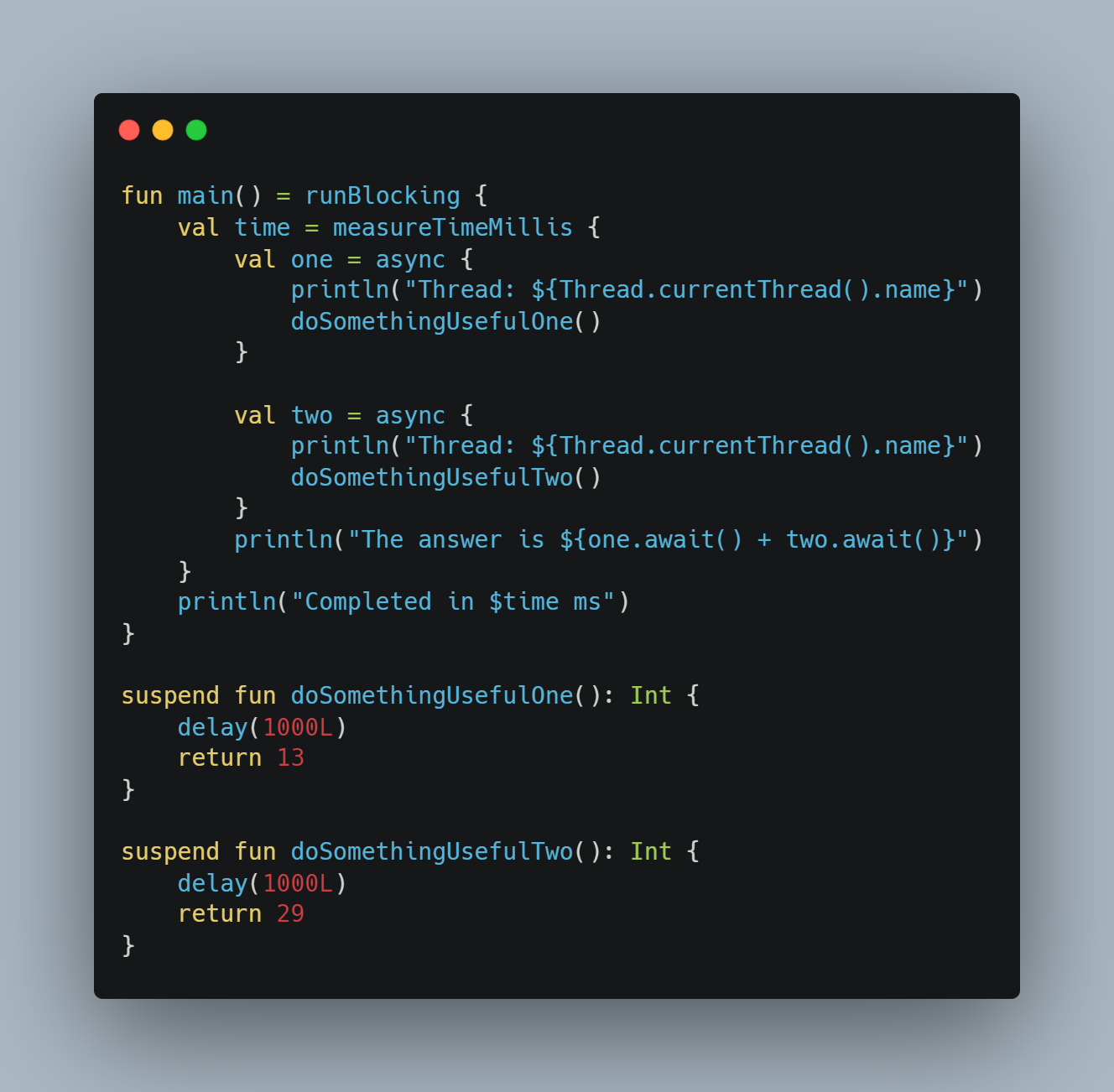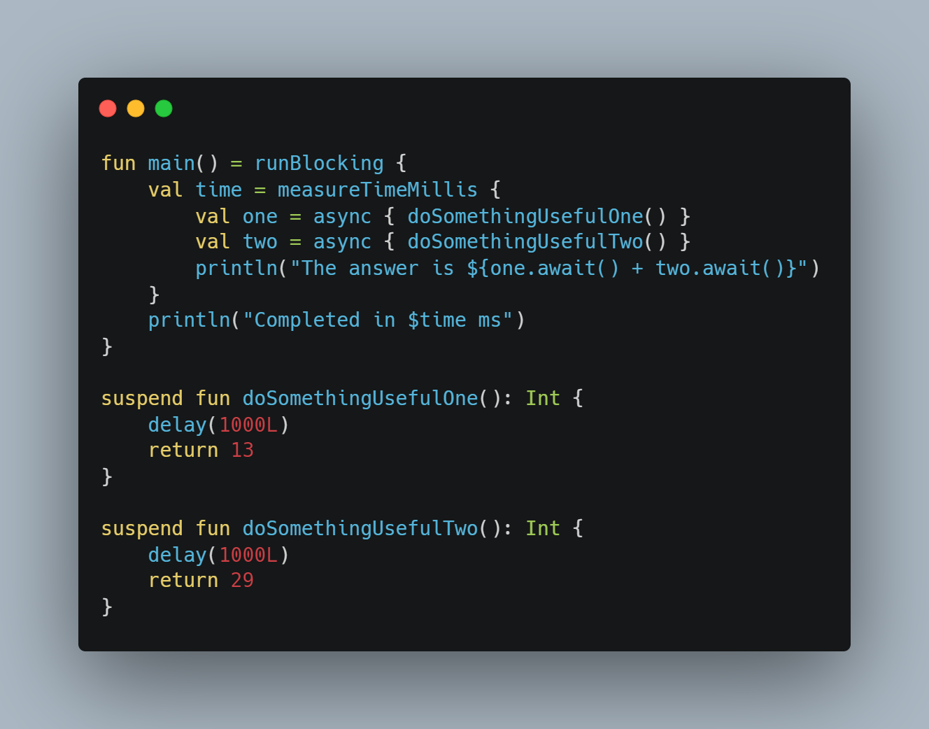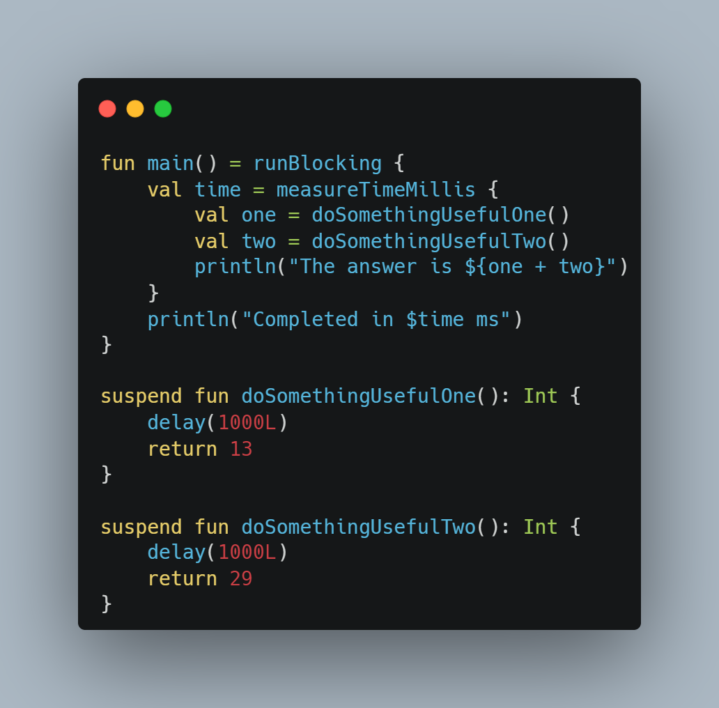 2초가 걸린다는건 doSomethingUsefulone에서 1초 delay 후 doSomethingUsefultwo에서 1초가 걸린다는 뜻이 된다.