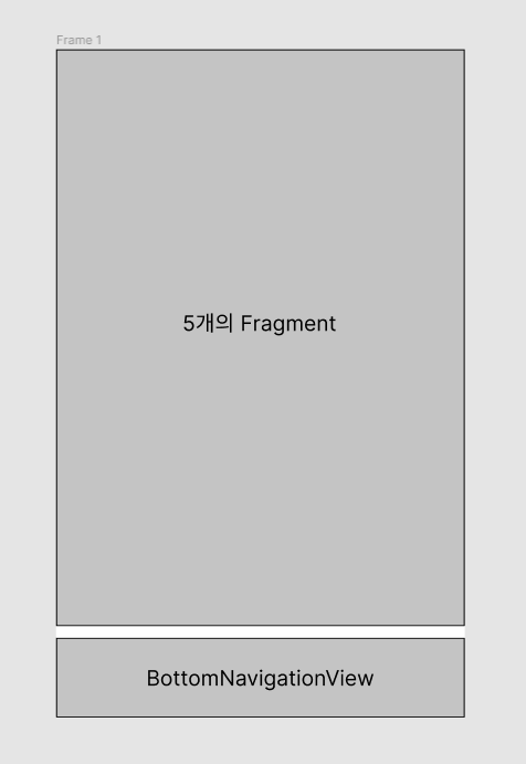 BottomNavigation으로 만들면 될 것 같다. 아래의 사진처럼 5개의 프래그먼트를 만들고 BottomNavigation을 Graph로 연결하여 기본틀을 만들자.